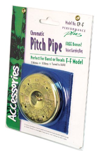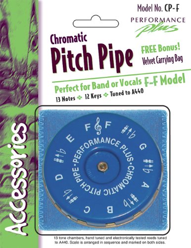 The CP-F Chromatic Pitch Pipe has a range of F to F, and is designed to produce a precise musical pitch. Each Chromatic Pitch Pipe has 13 hand-tuned, harmonica quality brass reeds with extra tight non leaking tone chambers are electronically test by exacting strobe testers to insure they are precision tuned for the full chromatic scale. Each Performance Plus Chromatic Pitch Pipe is has the scale arranged in sequence and noted by embossed lettering on both the blue top and gold colored bottom covers. Each Performance Plus Chromatic Pitch Pipes includes a soft velvet royal blue carrying pouch.