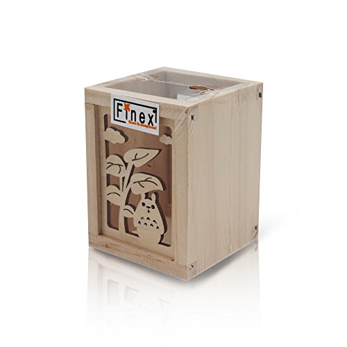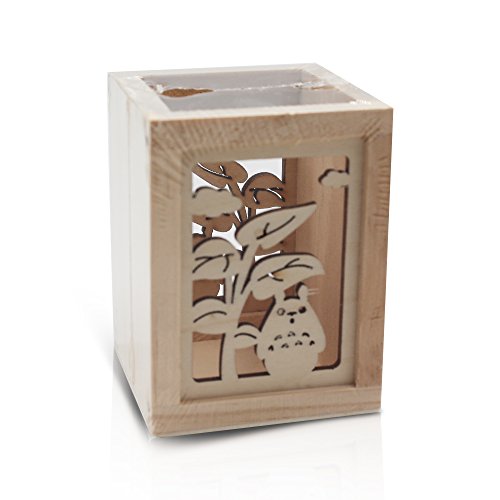Finex My Neighbor TOTORO Wooden Cuboid Hollow Wood Carving design Pencil Holder and Pen holders box for desk