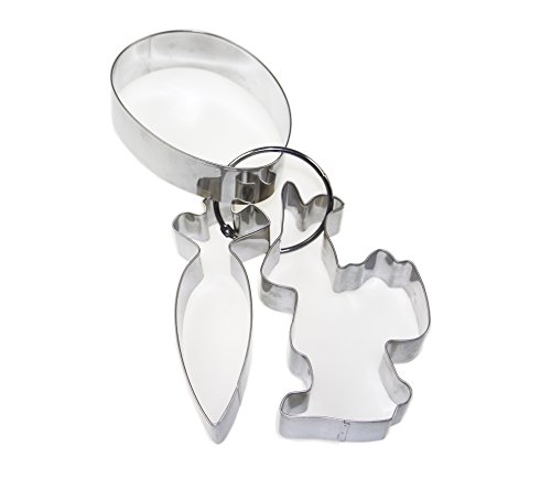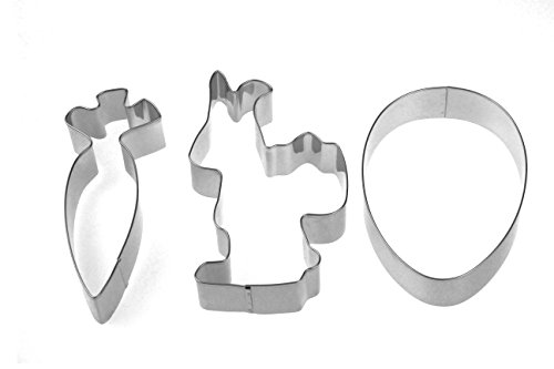 Professional quality set of 3 Spring & Easter Theme Cookie Cutters, Set includes: Carrot, Bunny and Egg.