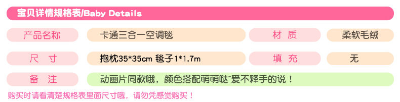 Size: pillow 35X35cm blanket 100x170cm