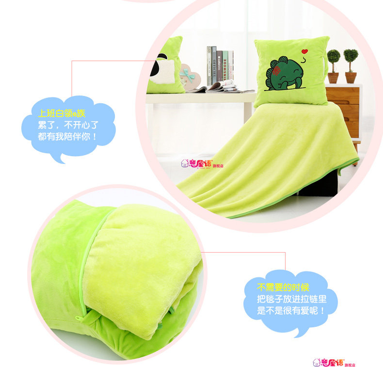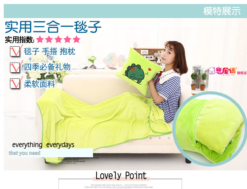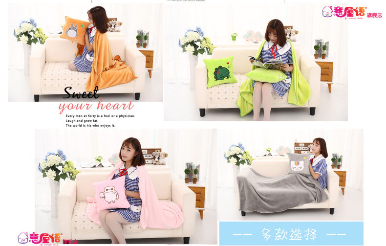 卡通三用暖手办公室午睡抱枕空调法兰绒毯子枕头睡觉被子两用靠垫