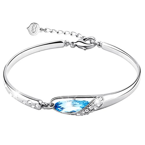 -. Title : T400ジュエリー 「月、冴える」純銀製 バングル スワロフスキークリスタル ブルー S925シルバー レディースブレスレット アジャスター付 贈り物