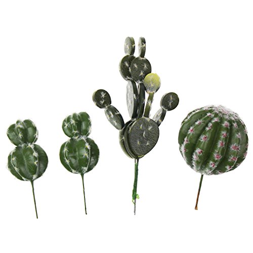 LJY 4 Pieces Realistic Artificial Tall Cactus Faux Succulent Greenhouse Assorted Small Plants Unpotted for Home Garden Decoration
