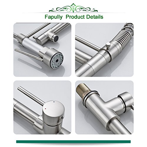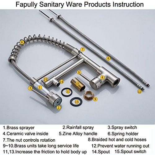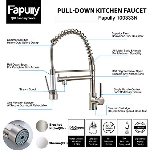 Fapully Contemporary Spring Single Handle Kitchen Sink Faucet with Pull Down Sprayer, Brushed Nickel