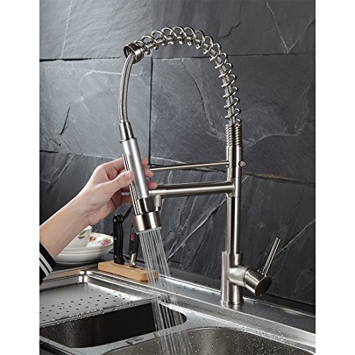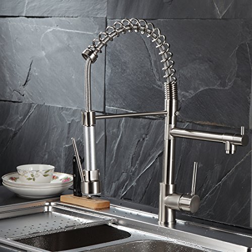 ❥Heavy-Duty Commercial-Style Spring Design with Spot Resist Brushed Nickel Pull Down Spyer Kitchen Sink Faucets