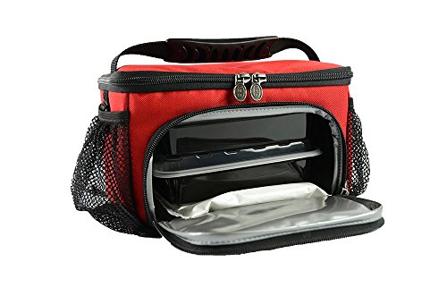 Isolator Fitness 2 Meal ISOMINI Meal Prep Management Insulated Lunch Bag Cooler MADE IN USA RED w/BLACK w/BPAfree/microwave/dishwasher/freezer safe/stackable Meal Prep Containers ISOBrick Strap