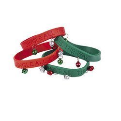 Product DescriptionYou will receive 24 rubber Jingle Bell Bracelets - 12 red and 12 green. Each bracelet has three metal jingle bells and is imprinted with the words "Jingle All The Way"0