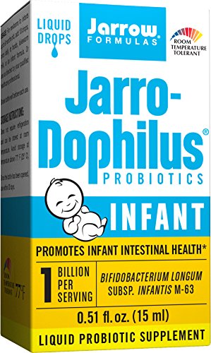 Jarrow Formulas, Jarro-Dophilus Infant, 1 Billion Per Serving, 0.51 Fl ounces(15 milligrams). Jarro-Dophilus Infant is formulated with Medium Chain Triglycerides (MCTs), a component of breast milk. Supplements Facts: Serving Sie 10 drops. Serving per container: 30. Ingredients: Bifidobacterium longum subsp. infantis M-63: 1 Billion Viable Cells(Minimum). Other Ingredients: Medium chain triglycerides, tapioca starch, calcium phosphate, vitamin E (added to preserve freshness) and citric acid. No wheat, no gluten, no soybeans, no dairy, no egg, no fish/shellfish, no peanuts/no tree nuts. Suitable for vegans/vegetarians. Suggested Usage: For newborns to infants up to 6 months old, add 10 drops, once daily, to foods, lukewarm milk, or an infant formula. Or use as directed by your qualified healthcare professional. Shake bottle well before each use. Storage Instructions: Does not require refrigeration and can be stored at room temperature. Once the bottle has been opened, use within 30 days.Feature