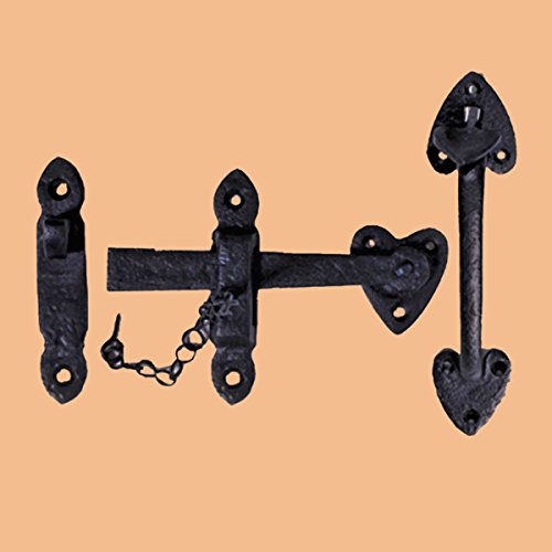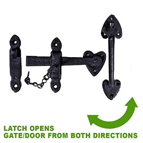 -. Brand : Renovator's Supply -. Color : Black -. EAN : 0096962361976 -. Feature : Wrought Iron Door Latch / Crafted of sturdy wrought iron. / Have our exclusive RSF protective finish. / Comes with mounting hardware / Two sided hook - can close to the left or right -. Label : Renovator's Supply -. Manufacturer : Renovator's Supply -. MPN : 15823 -. NumberOfItems : 1 -. PackageQuantity : 1 -. PartNumber : 15823 -. ProductGroup : Home Improvement -. ProductTypeName : HARDWARE -. Publisher : Renovator's Supply -. Studio : Renovator's Supply -. Title : Suffolk Door Latch Black Wrought Iron Heart Thumb Set 8 H | Renovators Supply -. UPC : 096962361976