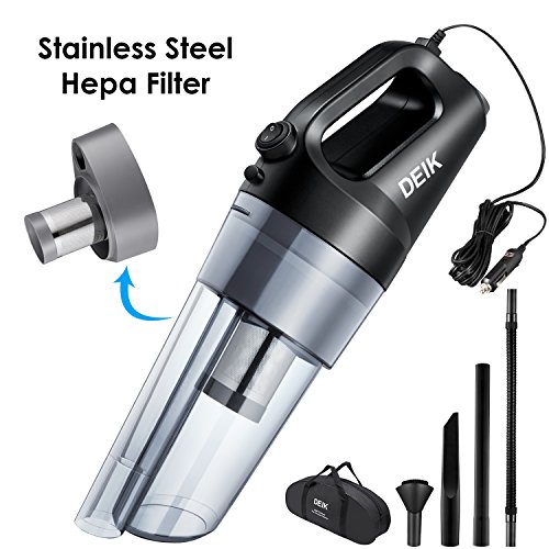 -. Title : Deik Car Vacuum, Car Vacuum Cleaner with DC 12V, 4.5 Kpa Handheld Auto Vacuum Cleaner, Lightweight Car Cleaner with UL Cigarette Lighter Plug, LED Light, Stainless Steel Hepa Filter, One Carry Bag