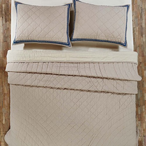 Charlotte Azure Standard Sham exudes European charm, with on-point square hand-quilting on a luxurious blend of linen/cotton (Belgium linen weight – 50% cotton, 50% linen) on the top, reversing to an ultra-soft voile on the back with 3-button closures. An azure blue stencil border with mitered edges adds a classic, elegant look, while cotton batting completes the natural breathability of the linen/cotton and cotton voile.