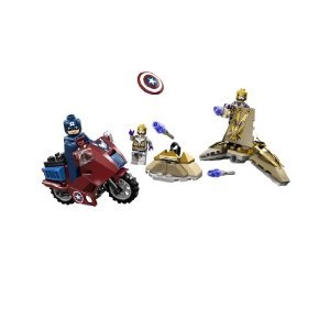 Studio : LEGO ReleaseDate : 2013-07-28 Publisher : LEGO Binding : Toy Product Description Captain America is ready to take on the Alien threat in the 72 piece Lego Superheroes The Avengers - Captain America Avenging Cycle - 6865 . Captain America rides into action on his bike and uses his indestructible shield to tackle the Alien General and Footsoldier on their hover gliders. Watch out though - they've got flick firing missiles ! This set will be a hit with collectors, as the Captain America and Alien General figures are only available in this set . 0