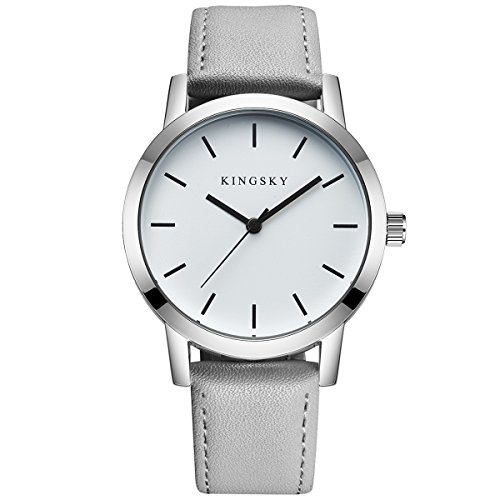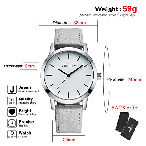 KINGSKY Ladies Fashion Casual Multi-color 20 mm Leather Strap Simple Design Japan Analog Quartz Movement Dress Wrist Watches (Grey)
