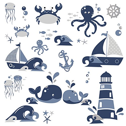 RoomMates RMK3298SCS Nautical Sea Friends Peel and Stick Wall Decals