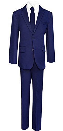 This handsome boys solid suit and tie includes a jacket, vest, tie shirt and pants. Made with 100% polyester this suit will surely impress. Perfect for ring bearers and any special wedding events. Please check our image size chart for the best fit.