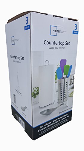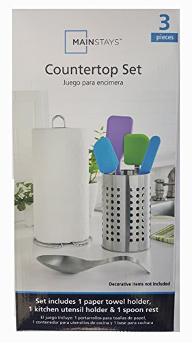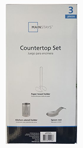 Mainstays 3-Piece Stainless Steel Countertop Set, Includes Paper Towel Holder, Utensil Holder, and Spoon Rest