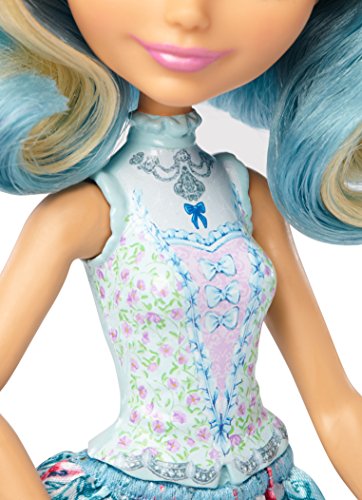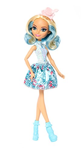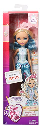 -. Binding : Toy -. Brand : Ever After High -. EAN : 0887961370263 -. Feature : The Ever After High dolls are dressed to a T -- for tea because it's always tea time at Ever After High / Darling Charming doll wears a sweet outfit and tea cup-inspired hat perfect for the occasion. / Her blue bodice has pink flowers and a high neck, the blue skirt has a floral pattern and blue shoes have trendy fringe-like touches / The pink teacup hat is the perfect topper in her white and blue streaked hair / Collect all of the Ever After High tea party dolls to fill your table (each sold separately, subject to availability) -. IsAdultProduct : 0 -. Label : Mattel -. Manufacturer : Mattel -. Model : DVJ15 -. MPN : DVJ15 -. NumberOfItems : 1 -. PackageQuantity : 1 -. PartNumber : DVJ15 -. ProductGroup : Toy -. ProductTypeName : TOYS_AND_GAMES -. Publisher : Mattel -. Studio : Mattel -. Title : Ever After High Tea Party Darling Doll -. UPC : 887961370263 -. Warranty : 1 year warranty against manufacturer defects