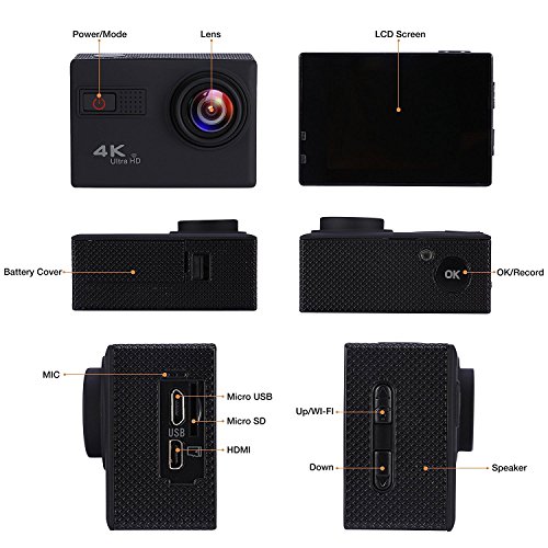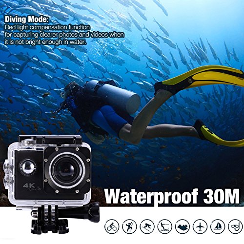 Awaytoy 4K WIFI Sports & Action Video Camera 2.0" LCD Novatek 96660 98ft Diving Mode with Carrying Case for Diving Cycling Helmet Motorcycle Drone Snorkel Black