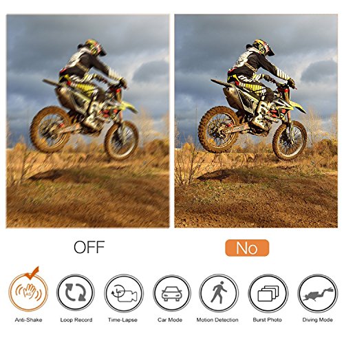 - The world's first DIVING feature - 30M(98ft, not a dishonest data) underwater waterproof camera, suitable for water sports such as horse riding, rafting, surfing in summer or winter. With anti-shake function, so that you can shoot more clear pictures.
