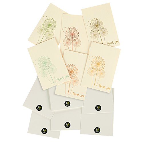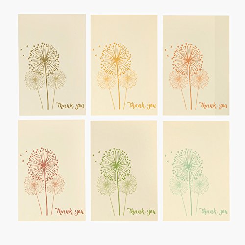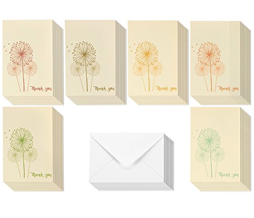 Thank You Note Cards - Feminine Dandelion Design - Bulk Box Set - Beige / Multicolor - Includes 48 Cards with Envelopes - 4 x 6 Inches