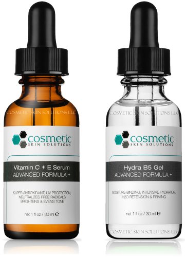 -. Binding : Misc. -. Brand : Cosmetic Skin Solutions LLC -. EAN : 0885785994931 -. Feature : All Cosmetic Skin Solutions products' are Manufactured in our FDA-Registered laboratory facility under strict US FDA guidelines. Made in the USA. No Parabens. No Oils. Cruelty-Free. / This Best Selling Prevent | Hydrate combo pack of 1 Vitamin C+E Serum & 1 Hydra B5 Gel is the highest quality topical Vitamin C+E Serum and B5 Hyaluronic acid gel available in today's cosmetic marketplace! / This Best Selling Vitamin C+E Serum combines 0.5% Ferulic acid (potent antioxidant found in cell walls of plants) with 15% pure L-Ascorbic acid (Vitamin C) & 1% Alpha Tocopherol (Vitamin E). This Best-Selling moisture-enhancing gel is enriched with high amounts of Vitamin B5 and hyaluronic acid. / Often used in synchronization with each other in professional treatments, this hyaluronic acid gel with Vitamin B5 activates Vitamin C, rendering it more effective than if used alone. / The manufacturing date and time a product is applied are both critical components which define the performance level a topical antioxidant treatment will provide to the skin. Cosmetic Skin Solutions LLC manufactures our entire line of topical antioxidant treatments once per week to ensure absolute freshness and to optimize efficacy P.R.Ior to use. -. Label : Cosmetic Skin Solutions LLC -. Manufacturer : Cosmetic Skin Solutions LLC -. Model : CE+B5 -. MPN : CE+B5 -. PackageQuantity : 1 -. PartNumber : CE+B5 -. ProductGroup : Beauty -. ProductTypeName : BEAUTY -. Publisher : Cosmetic Skin Solutions LLC -. Studio : Cosmetic Skin Solutions LLC -. Title : Best Vitamin C+E Serum + Hydrating B5 Gel Advanced Formula +. Prevent / Hydrate - 2 Combo Pack - 1 fl oz / 30 ml each. -. UPC : 885785994931