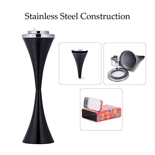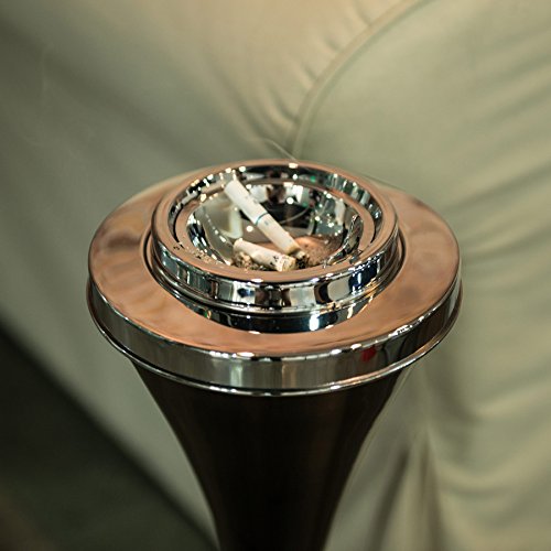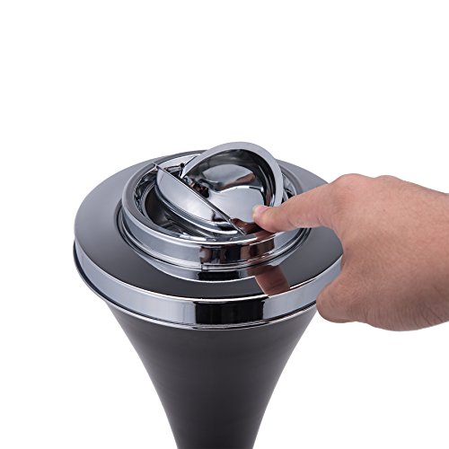 CO-Z Floor Standing Ashtray Receptacle with Lid 24 In. Height, Contemporary, Retro, Self-Cleaning (Black)