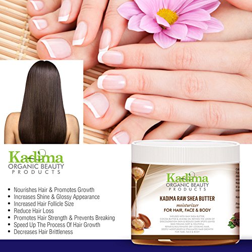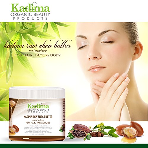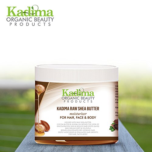 -. Binding : Misc. -. Brand : Kadima -. EAN : 0712038723416 -. Feature : Made with Natural Organic Ingredients / For healthier hair and radiant skin / For all hair and body types / Mild to use on toddlers and children / Jar size: 16oz -. IsAdultProduct : 0 -. Label : My Must Have -. Manufacturer : My Must Have -. MPN : My Must Have -. PartNumber : My Must Have -. ProductGroup : Beauty -. ProductTypeName : BEAUTY -. Publisher : My Must Have -. Studio : My Must Have -. Title : Kadima Raw Shea Butter Moisturizer for Hair, Face and Body -. UPC : 712038723416