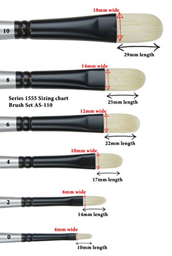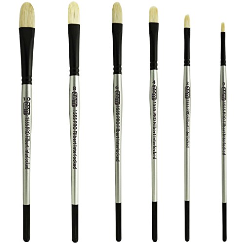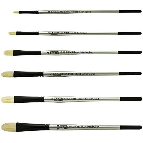 PRO Interlocked White Hog Bristle Filbert Brushes Set 6 pcs