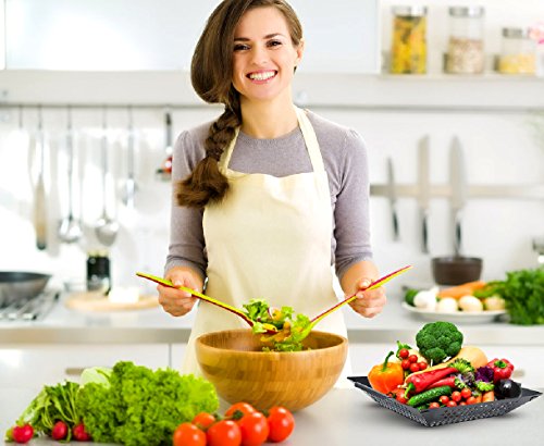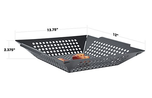 Large, 13-1/2” x 12” x 2-1/2” nonstick grilling basket engineered with 1/4” diameter perforated holes to allow for your mouthwatering flavors to permeate your foods while preventing them from falling into the fire