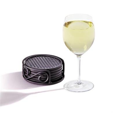 - Protects your surfaces from scratches and watermarks - Durable steel holder^Decorative steel coaster stand adds to any modern dcor - Easy to clean^Black rubber coasters protect tabletops^Size: 2 1/4" H by 4 1/2" W by 4 1/2^Color: Black - 2 Set of 6 Coasters