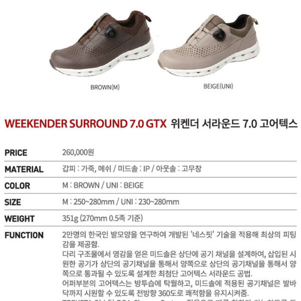2만명의 한국인 발모양을 연구하여 개발된 네스핏 피팅 기술을 적용하여 최상의 피팅감 제공함/ GORE-TEX 서라운드® 기술을 사용하여 발 전체의 방수 및 투습력을 360 도로 극대화 시켜 언제 어디서나 쾌적함을 유지함 / TREKSTA 커스텀 BOA Closure System 적용으로 빠른 탈착이 가능하도록 도움을 줌.