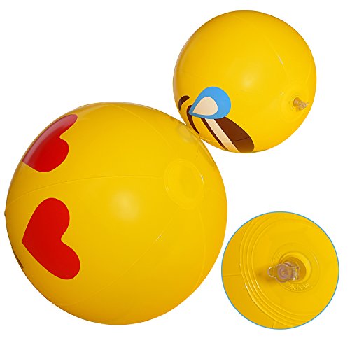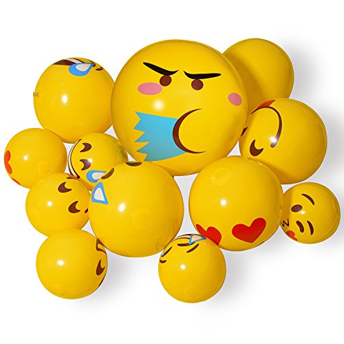 Emoji Inflatable Beach Balls, Emoji Kids Pool Party Toys Perfect For Water Games, 12 Pack Mixed Size Water Beach Party Supplies,Favors for Great Swimming & Summer Pool Party
