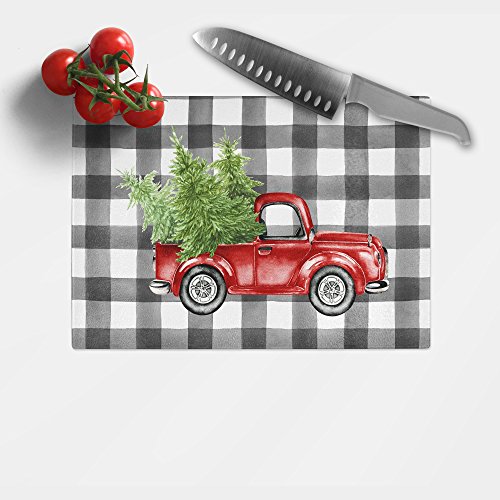 Holiday Tempered Glass Cutting Board - 8" x 11" Custom Printed Bright Chopping Boards Christmas Gifts (Black Plaid - Red Truck)