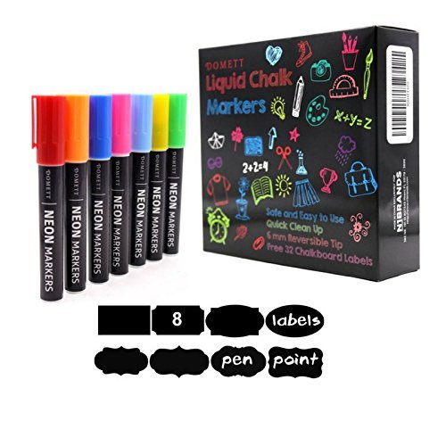 Domett Chalk Markers, 16 Pack with 32 Chalkboard Labels