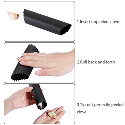 Easy to Use: Designed with 2 large handles for anyone to easily hold, squeeze and press garlic. Comes with silicon peeler tube to easily peel garlic cloves; cleaning brush included for conventional cleaning. Rinse under running water or place it in dishwasher.