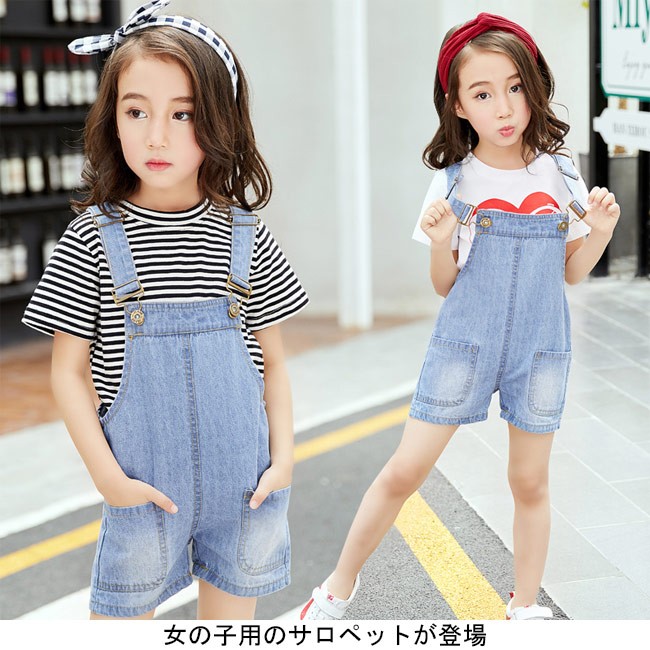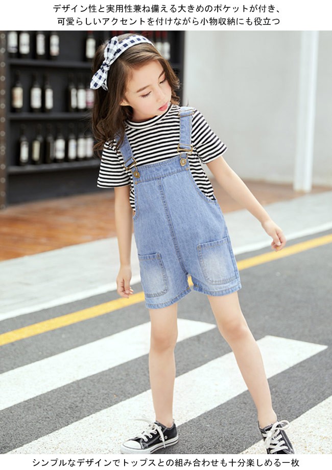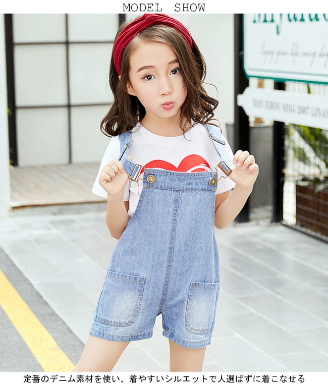 デニムサロペット 女児 ショートパンツ 子供用 女の子 オーバーオール デニム ボトムス ジュニア サロペット 夏物 kids女の子用のサロペットが登場定番のデニム素材を使い、着やすいシルエットで人選ばずに着こなせるショートパンツの仕様で夏に解放感たっぷりの履き心地デザイン性と実用性兼ね備える大きめのポケットが付き、可愛らしいアクセントを付けながら小物収納にも役立つ肩ベルトはバックル付きで長さが調整できるシンプルなデザインでトップスとの組み合わせも十分楽しめる一枚カラー:写真色素材 綿混紡サイズ(cm) 110 120 130 140 150 160110 総丈(肩ベルト含まず)41 ヒップ68120 総丈(肩ベルト含まず)44 ヒップ72130 総丈(肩ベルト含まず)47 ヒップ76140 総丈(肩ベルト含まず)50 ヒップ80150 総丈(肩ベルト含まず)53 ヒップ84160 総丈(肩ベルト含まず)56 ヒップ88ご注意:※サイズは平置きサイズです。素人採寸ですので、若干の誤差がございます、ご了承ください。