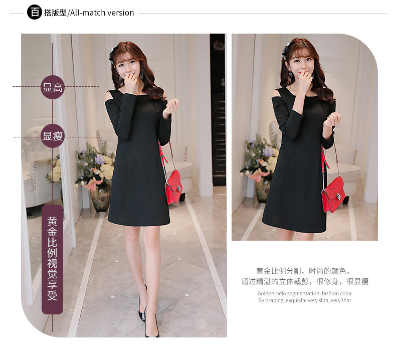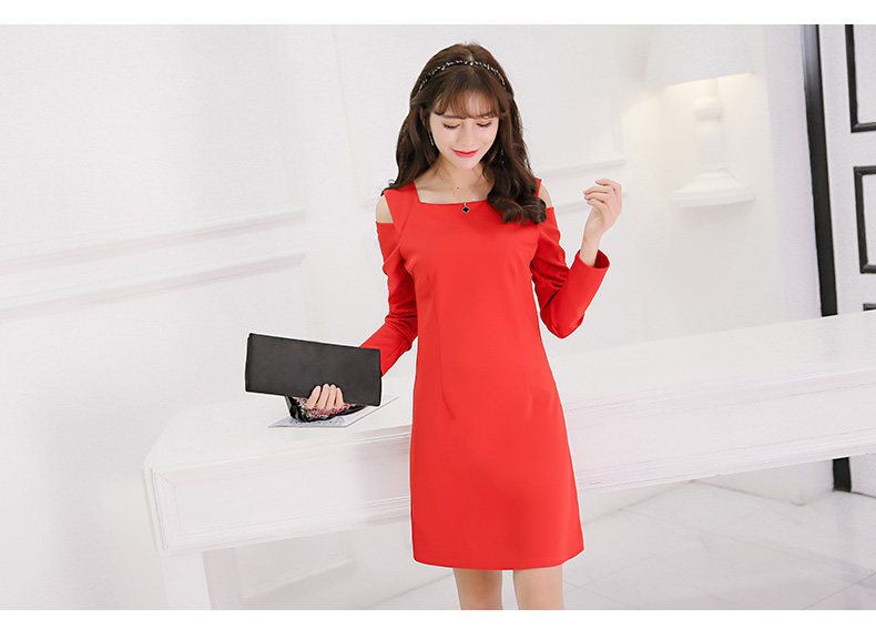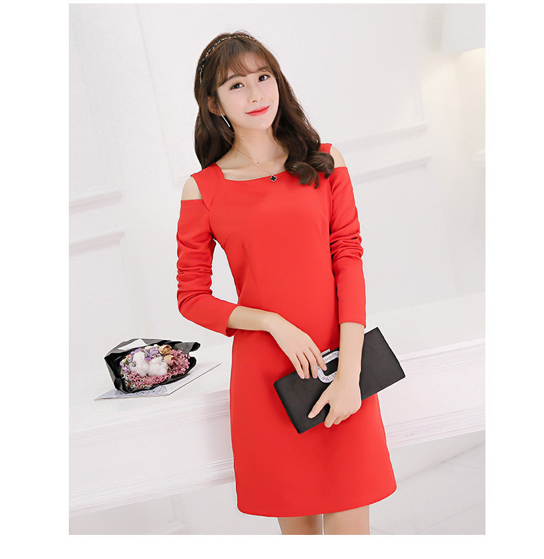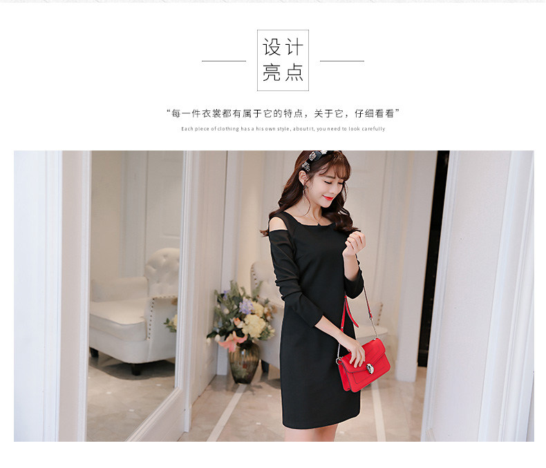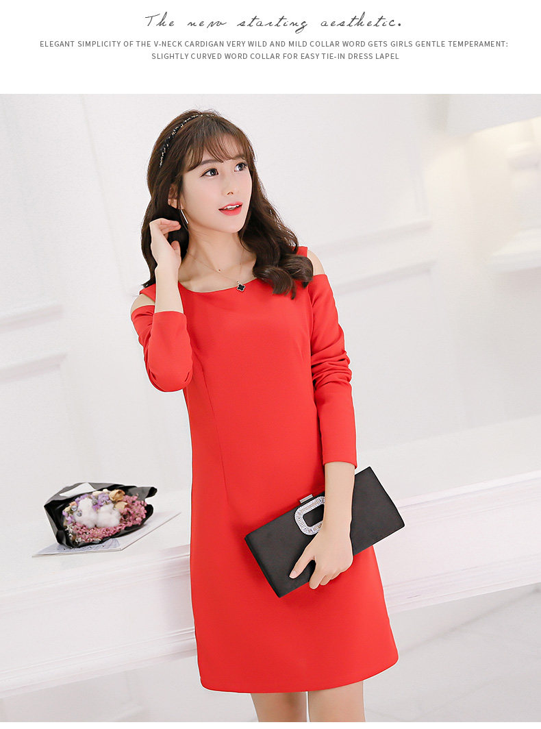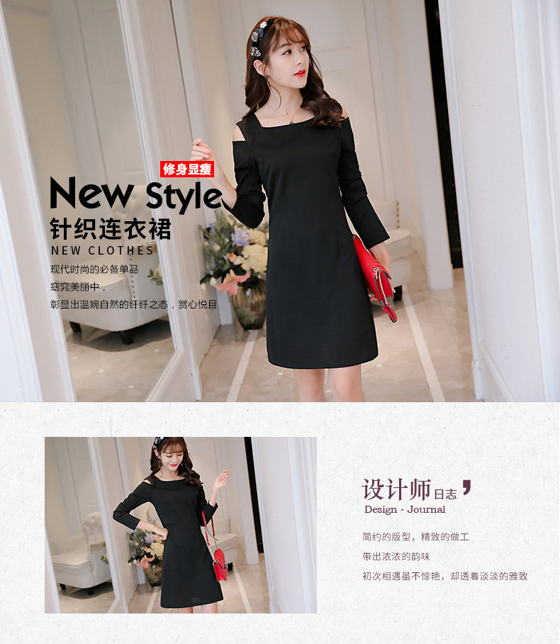 春夏新款女装修身韩版长袖显瘦露肩时尚针织连衣裙女