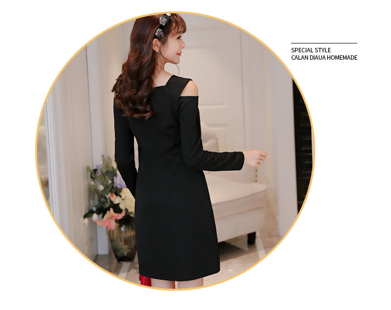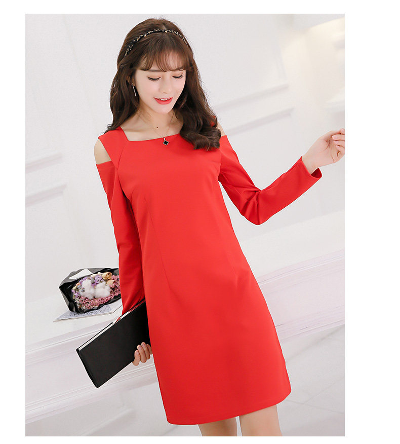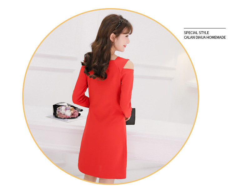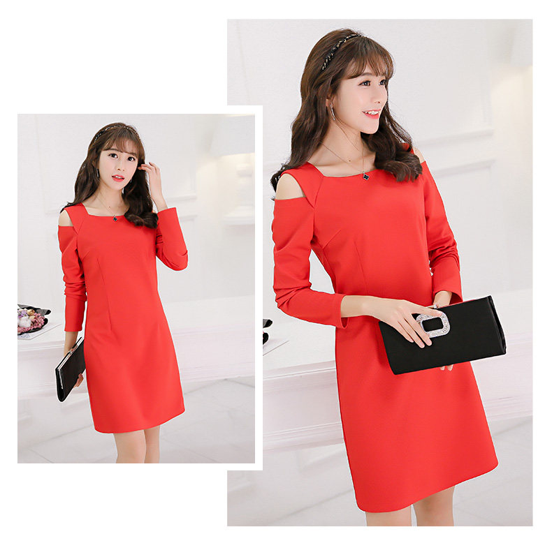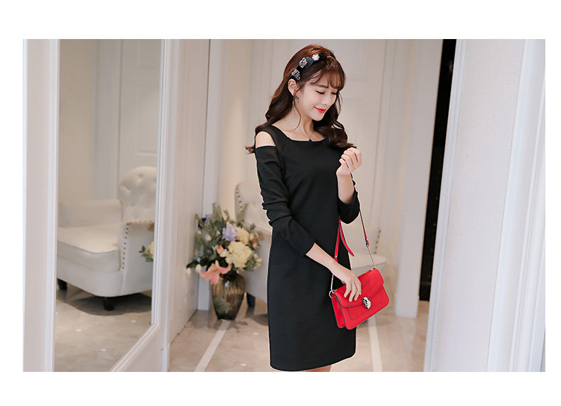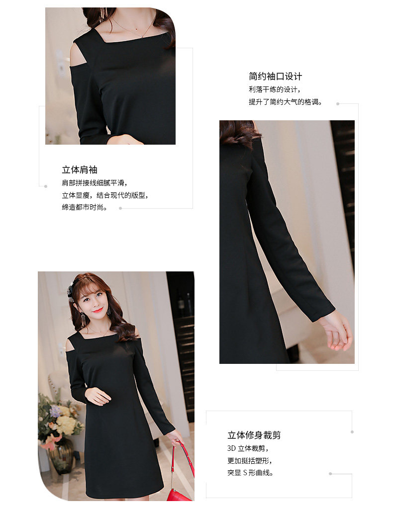 春夏新款女装修身韩版长袖显瘦露肩时尚针织连衣裙女