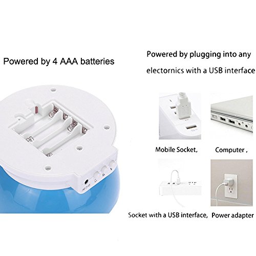 - 3 ways to power - Power it with a USB port into a wall adapter and into the wall (Adapter not include).Power it with a USB plug to computer.Power it with 4 AA batteries (not included)