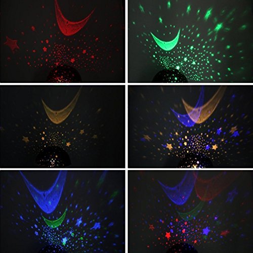 - Quiet & Relaxing - There are 4 pcs LED Beads of warm light, blue light, green light, red light. A beautiful addition to any nursery, this moon and star rotating projection light brings sweet dreams to your little ones