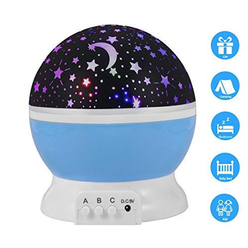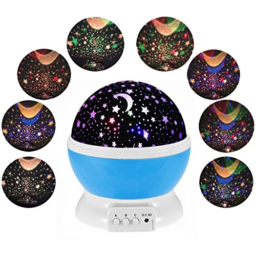 Monilon Baby Night Light Moon Star Projector 4 LED Bulbs 9 Light Color Changing 360 Degree Rotating Romantic LED Nightlight Projector with USB Cable (Blue)