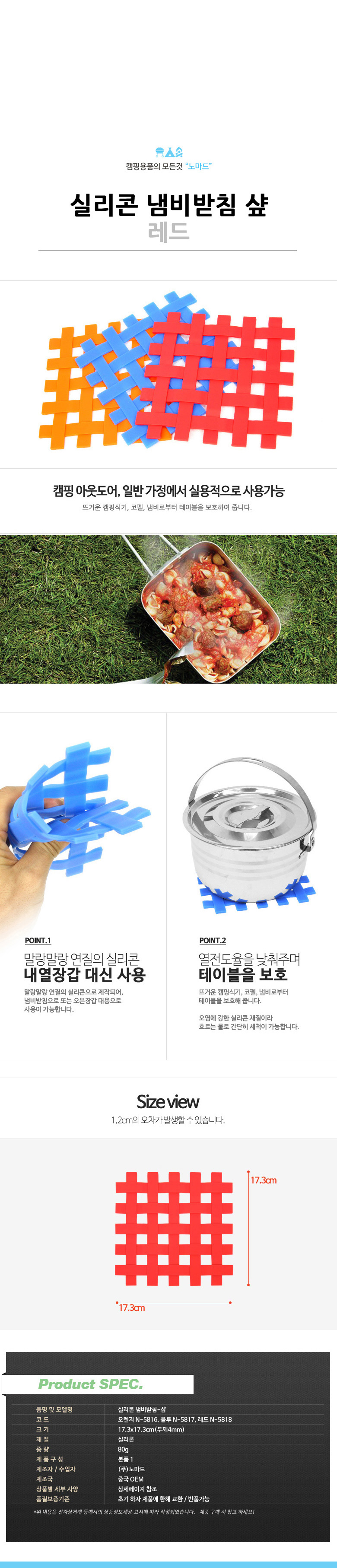 • 품명 실리콘 냄비받침 샵 레드