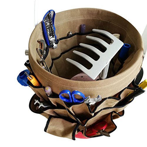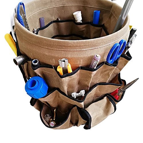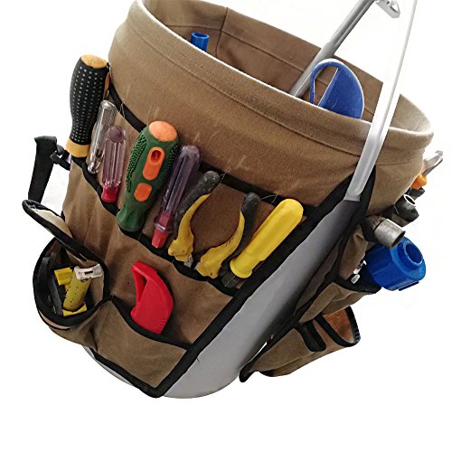 Garden Bucket Tool Caddy Organizer Waterproof Waxed Canvas Tool Bag Heavy Duty Multi Purpose Bucket Tool Bag Holds All Little Tools for Garden Yard Perfect For Gardener or Fishing Enthusiast CYTB01