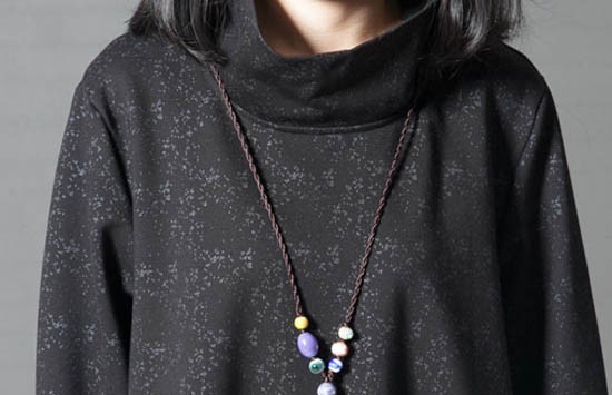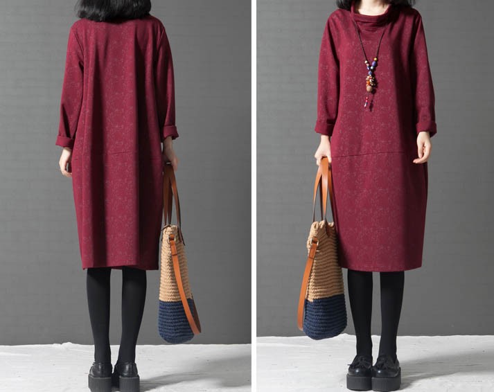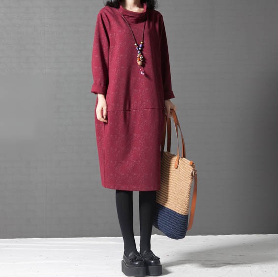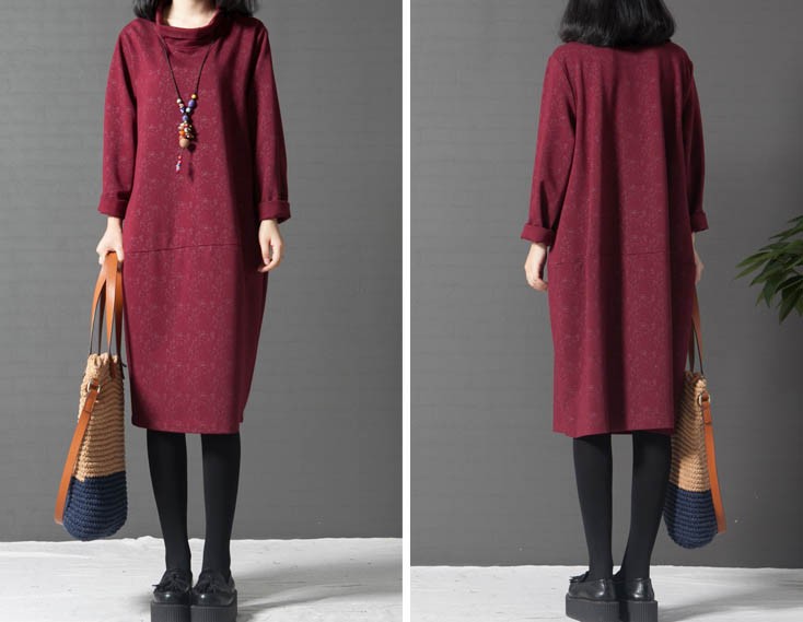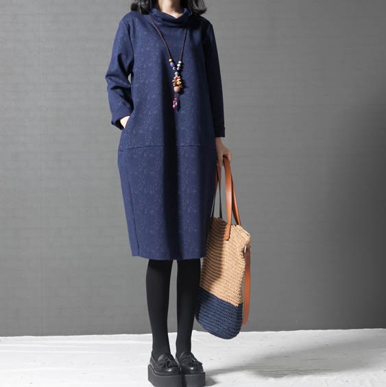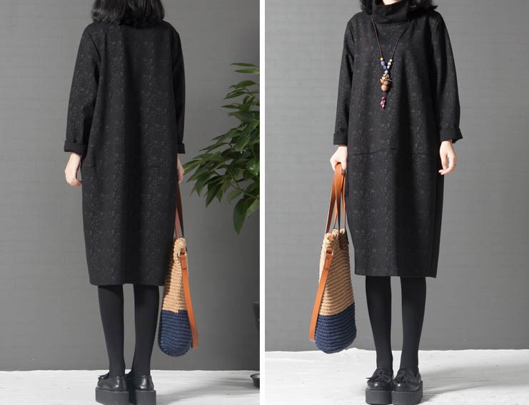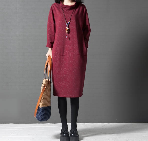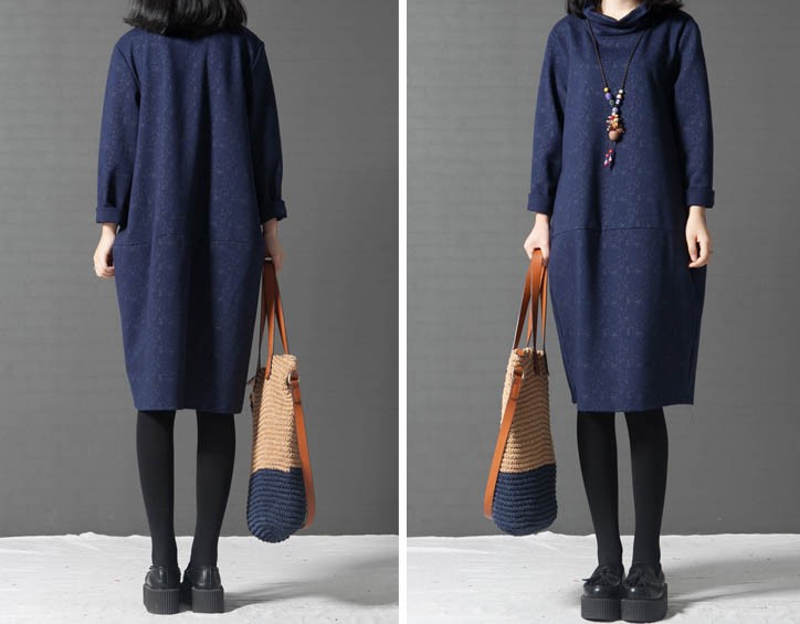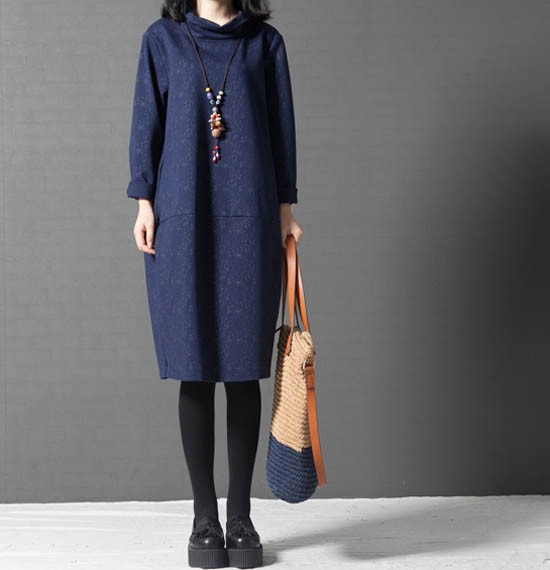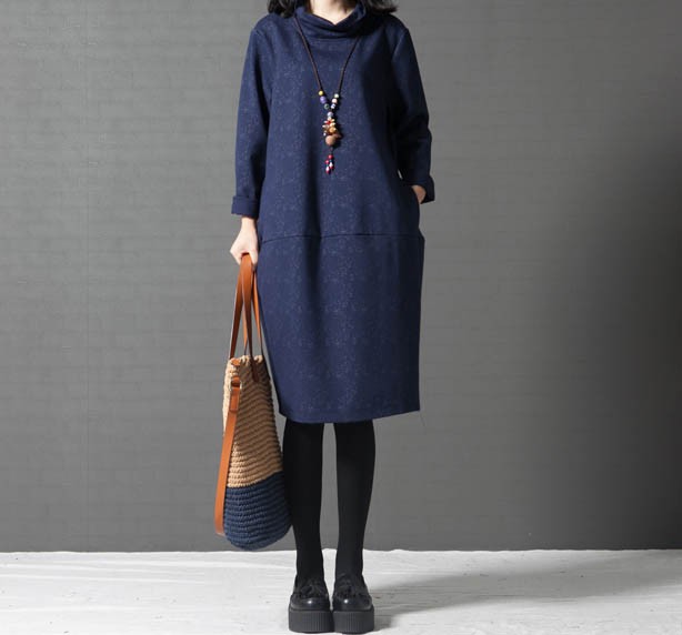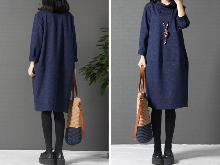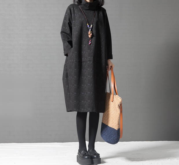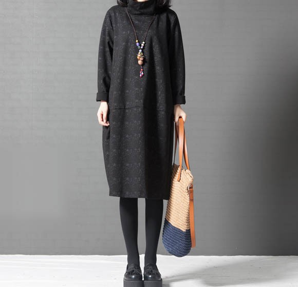 タートルネックゆったりひざ丈ワンピース