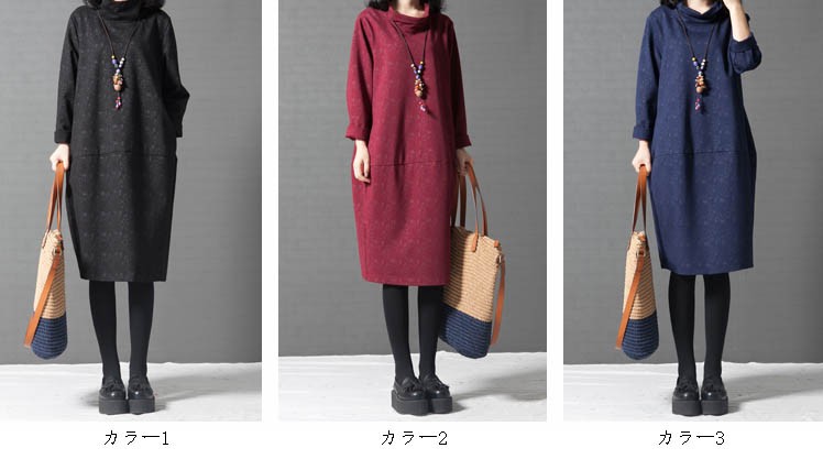 ワンピ ワンピース ひざ丈ワンピース ハイネック タートルネック バルーンタイプ ゆったり レディス レディース 秋 新作 2017