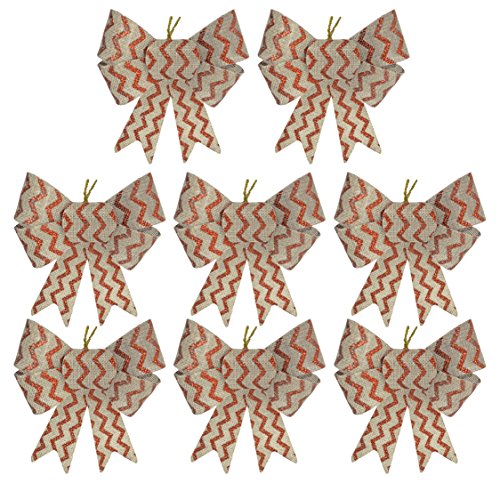 (Black Duck Brand)/Stationery Party Supplies/Gift Wrapping Supplies/DIRECT FROM USA/Set of 8 Silver and Red Burlap Festive Holiday Christmas Bows - Perfect as Tree Ornaments - Tre...