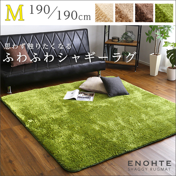 ●ふわふわシャギーラグマットMサイズ(190×190cm)洗えるラグマット、お手入れも簡単エノーテ
