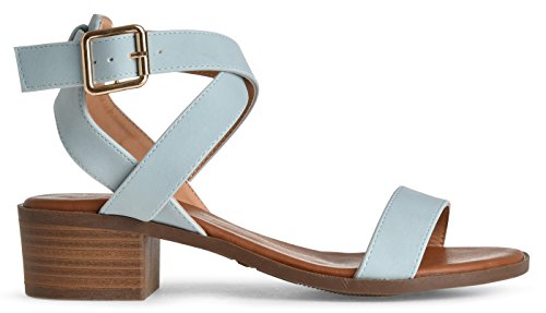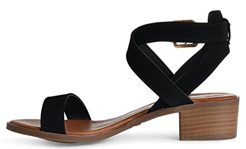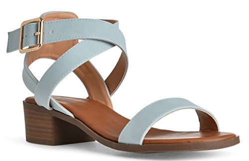 Product DescriptionWomen's simple elegant open toe heeled sandal is sure to be a summer favorite! Adjustable buckle ankle strap with open toe front stacked block heel. Imported.0