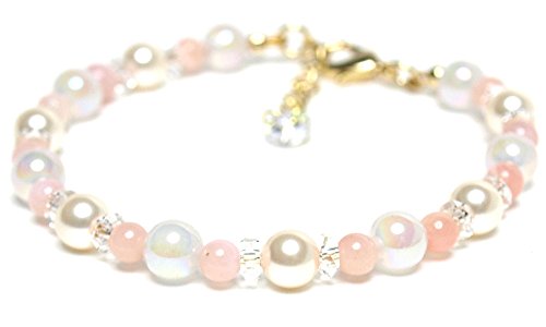 -. Feature : ピンクオパール4mm、ローズオーラクォーツ6mm、クリスタルパール6mm、水晶(ボタンカット)、アジャスター、留め具(金メッキ) / 約3.0センチのアジャスターで調節できるので、スタイルに合わせて自由に調節して頂けます。手首サイズは約15~17cmの間で調節可能です。 / 【ご注意】天然石を使用しているため、個々の色合いや形(サイズ感)、模様などが画像と若干違う場合がございます。 / 【1年間保障サービス】詳しくは http://fetti.jp/faq をご覧ください。 / さざれ水晶のサービスは終了いたしました。