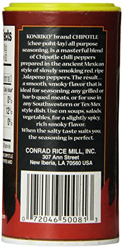 Our konriko brand chipotle (pronounced chee-poht-lay) all purpose seasoning is a masterful blend of chipotle chili peppers prepared in the ancient Mexican style of slowly smoking red ripe jalapeno peppers